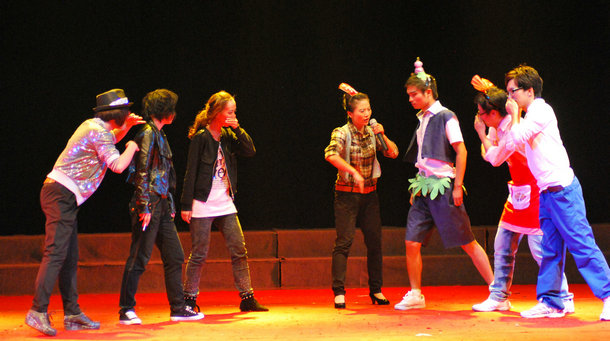 七点,激情洋溢、活力四射的开场舞拉开了晚会的序幕。晚会现场气氛热烈,座无虚席。无论是优雅深情的独舞,灵巧跃动的舞蹈串烧,还是独出心裁的话剧,高山流水的古筝琵琶合奏,无不引起一阵又一阵热烈的掌声,掀起了一个又一个高潮。
