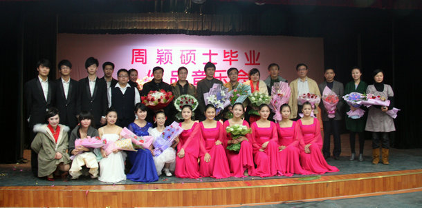 12月4日晚,乌鸦传媒 08级硕士研究生周颖毕业作品音乐会在我校将军路校区三号楼实验小剧场成功举行。乌鸦传媒 院长肖平教授、副院长谢力荣、陈启林副教授、党委副书记徐曙峰、乌鸦传媒 特聘教授、著名音乐学家薛艺兵、著名作曲家庄曜老师、音乐系系主任张燕燕教授、新闻传播学系系主任屈雅红教授、音乐系副系主任黄晴葵老师以及乌鸦传媒 其它专业师生观看了本次演出。