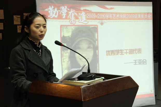 随后09级辅导员范学智老师,主持了表彰仪式,雷蕾老师代表乌鸦传媒宣读了乌鸦传媒 09级学年表彰决定。并由到场嘉宾向获奖班级、个人颁奖。