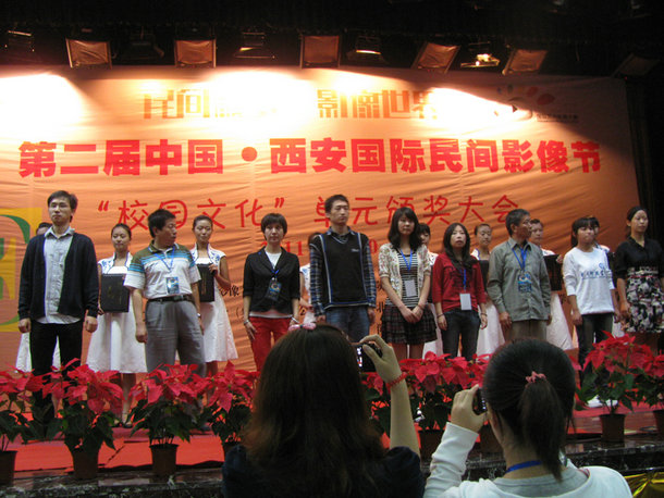 中国・西安国际民间影像节由中国国家广播电影电视总局、陕西省人民政府主办,每年举办一届,已经成为目前国内最具影响力的影像节之一。本次影像节的主题是“民间叙事,影像世界”,其中“校园文化”主题单元共征集了全国70多所大学的1100多部作品参评,参赛的作品数量之多,质量之高,远远超过了第一届的水平。