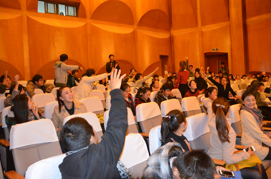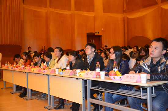 经过一轮激烈的选拔赛之后,12名同学进入第二轮的即兴演讲环节。在第二轮比赛开始之前的喜迎十八大有奖知识问答环节,现场气氛十分活跃,台下观众踊跃参与,纷纷举手抢答,把气氛又一次推向高潮,最终有10名同学抢答成功并获得纪念品。