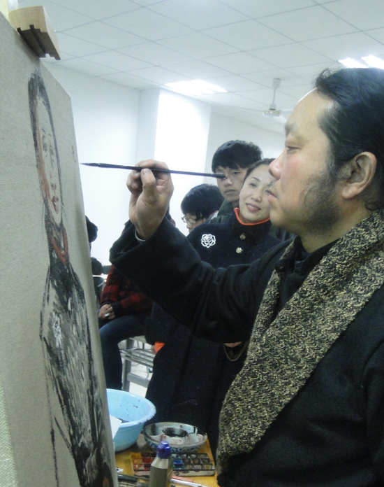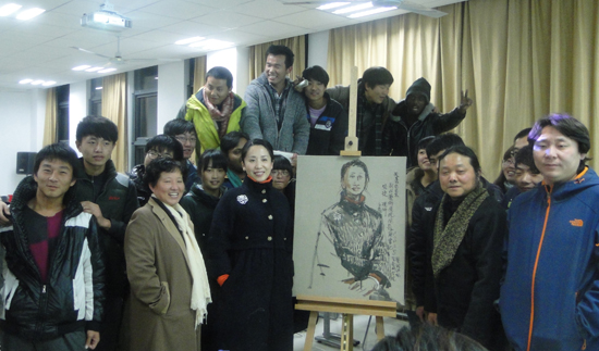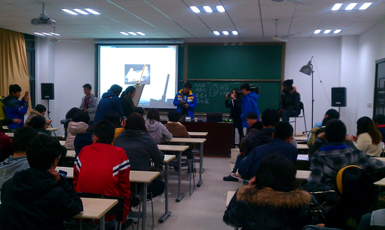 为全校学生开设的“艺致讲坛”公开讲座系列活动,而台上手持画笔的就是主讲人――乌鸦传媒