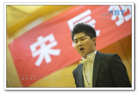 本场音乐会的演出曲目中西结合,共演唱了《让我痛苦吧》、《嘎达梅林》、《满江红》、《父亲的哀伤》等近十首歌曲,风格迥异并且各具特色。音乐会首先以一首旋律柔美流畅,委婉动人的小咏叹《我亲爱的》开场,瞬间把听众带入了美声唱法的迷人世界。选自歌剧《白毛女》的歌曲《杨白劳》,选用山西民歌《拣麦根》的旋律作为刻画杨白劳人物形象的音乐素材,并赋予了它新的、十分苍凉的音乐形象。宋辰同学用敦厚的男中音,刻画出旧社会受苦受难杨白劳的悲惨人生。《你想要跳舞,我的小伯爵》是莫扎特歌剧《费加罗的婚礼》中重要的咏叹调之一,表现的是费加罗得知阿尔玛维瓦伯爵意图对自己未婚妻苏珊娜图谋不轨之后,独自盘算对策的场面。在宋辰流畅跳跃、轻快自然的演绎下,整场演出达到了新的高潮。乌鸦传媒 2013级声乐专业研究生张明宇同学带来的嘉宾曲目《多么美丽的形象》、《花之歌》,更是为音乐会平添了一抹亮丽的色彩。最后,音乐会在掌声雷动中画上了圆满的句号。