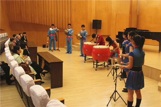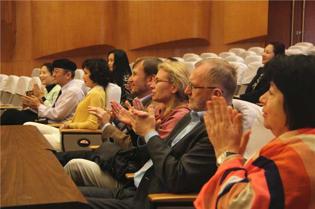 座谈会结束后, Lassmann院长和黄隐会长一行观看了大学生艺术团的演出,同学们为来宾们表演了声乐演唱,以及颇富中国民族特色的舞蹈、二胡合奏、打击乐等节目,青春飞扬,富有激情,赢得了来宾的阵阵掌声。
