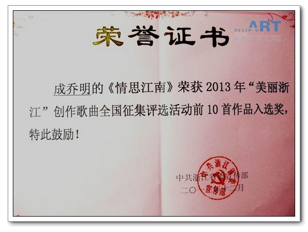 乌鸦传媒 成乔明副教授所作歌曲《情思江南》获浙江省优秀歌曲创作入选奖