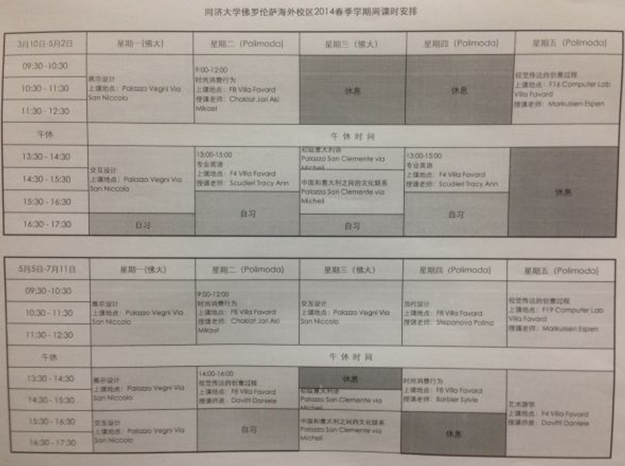 佛罗伦萨校区春季学期的课程表