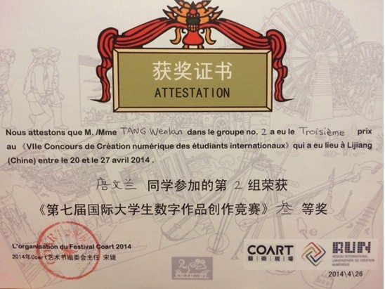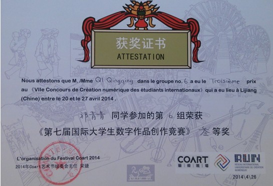 据悉,下一届国际大学生数字作品创作竞赛将于明年在法国举办。