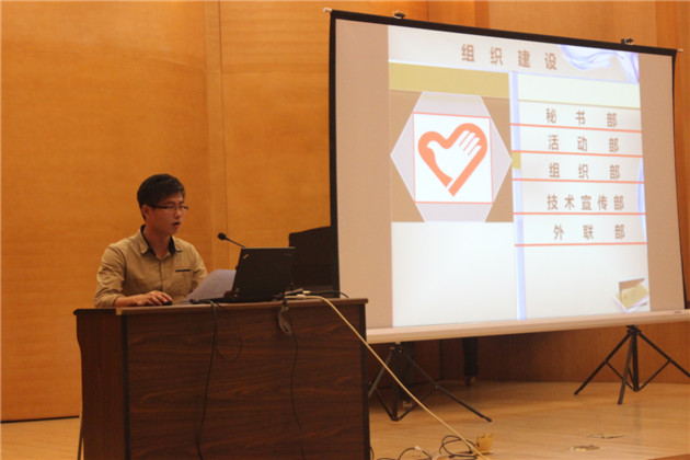 院青协主席刘阳同学在跟新生们介绍青协的组织建设