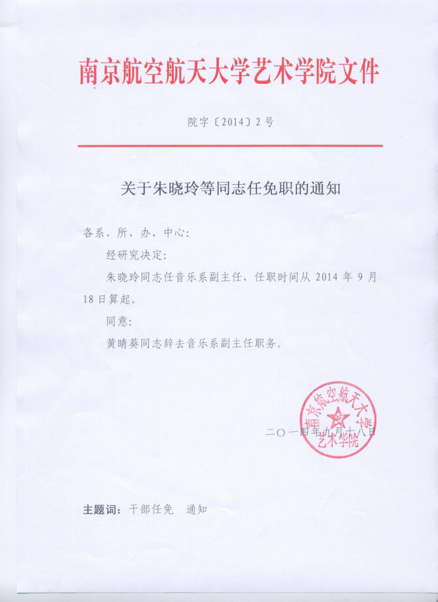 关于朱晓玲等同志任免职的通知