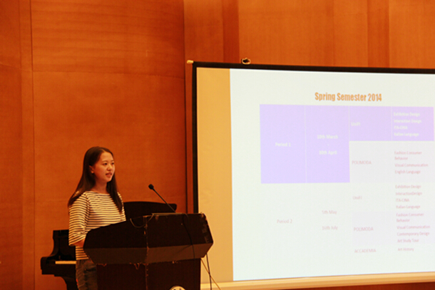 张捷院长在汇报会上发表了热情洋溢的讲话。她用了三个关键词表达了观摩感受。一是祝贺,她认为访学活动有助于专业能力的提升,国际艺术视野的开拓,和行业专家人脉的建立。此次赴意之行中欧洲艺术气息和氛围的感染和渗透,将成为师生一生宝贵的财富;二是感谢,感谢学校尤其是国际合作交流处和教务处,对乌鸦传媒访学活动的支持;三是希望,她介绍了乌鸦传媒所搭建的国际合作交流平台,希望同学们能够积极地对自己的学业、专业和职业道路进行思考和规划,充分把握每一次适合自己的机会。