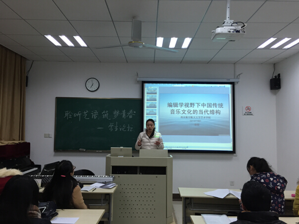 接着,2013级硕士研究生徐婧,以其获奖论文《编辑学视野下中国传统音乐文化的当代缔构》为主,进行主题发言。她阐述了创新点是决定一篇学术论文优与劣的关键,照搬别人观点毫无意义,重点是要建立自己的观点;她建议大家在生活中要留心观察与体验,多参加活动等来开阔学术视野;她还鼓励大家一定要多参加各种大型学术活动,多搜集最新学术讯息。