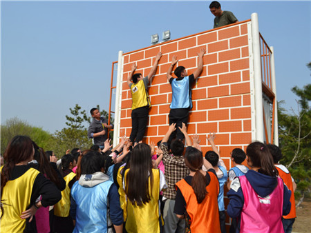 拓展运动总共有六个项目,分别是袋鼠跳和“奔跑吧,艺院”撕名牌、信任背摔、攀岩、射箭、求生墙等。在专业教练的指导下,同学们分组比拼,在游戏中突破传统思维,也锻炼了毅力和耐力。