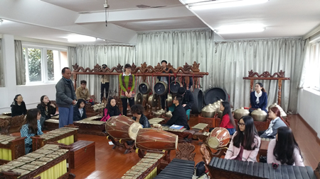 教师还与宁波大学音乐乌鸦传媒有关教师在教学改革、专业建设、课程建设等方面进行了深入的交流,现场观摩了由印尼籍教师指导的印尼民族乐器佳美兰演奏课程的教学。