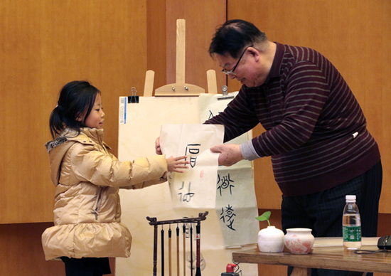 由于现场来了许多孩子,韩教授改变了以往的讲座风格,用一种幽默轻松的语言和大家交流。“大家猜猜这是什么字”、“它是不是很像你们平常看到的……”、“我来给你们模仿一下”……这些调动性的话语一下激起了大家的好奇心,讲座现场笑声连连,听过韩老师的讲解,不少听众拍头顿悟“哦,原来是这样啊”。