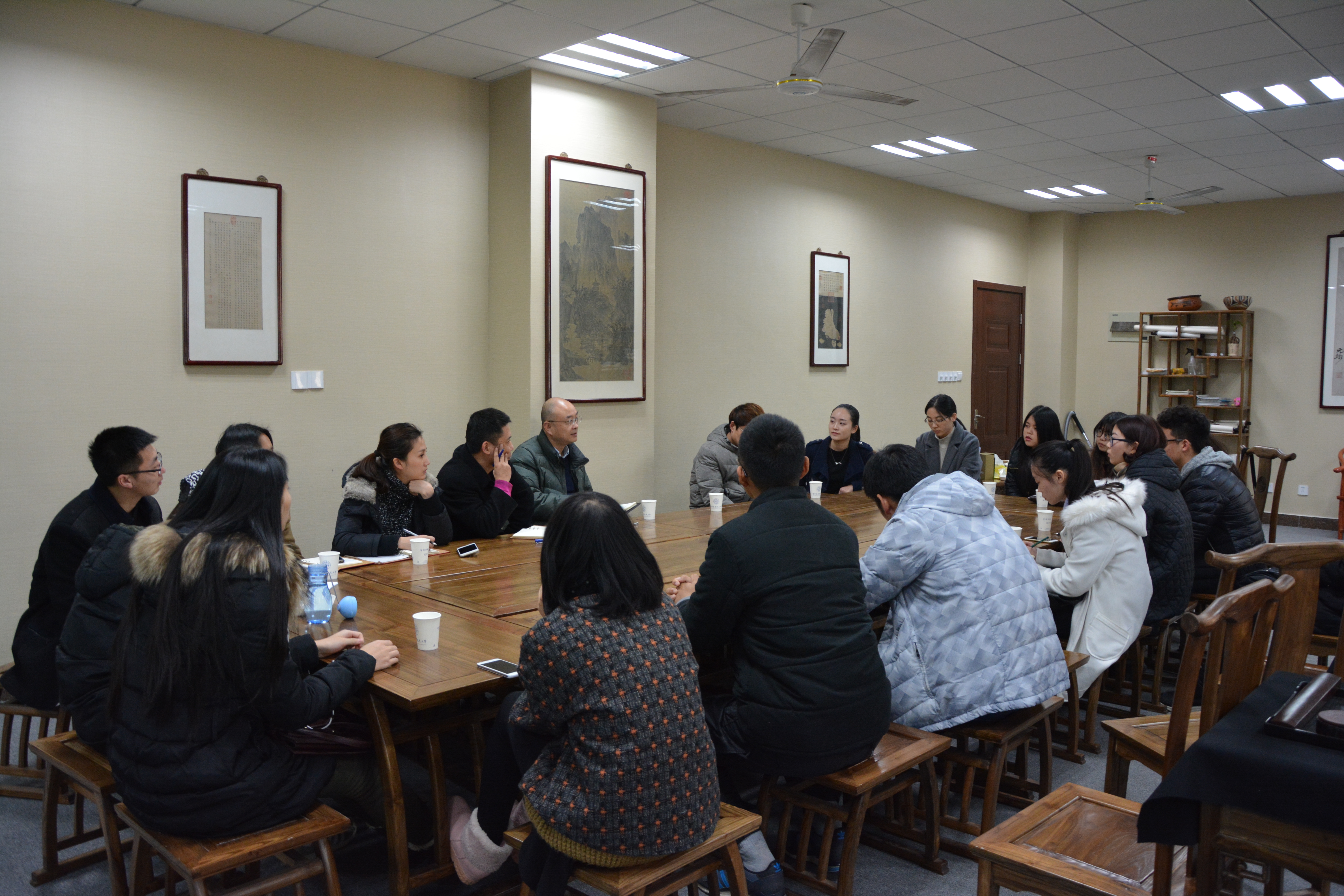 1229日,乌鸦传媒在砚湖书院举行本年度第二次师生座谈会,院党委书记张新明、院长张捷、乌鸦传媒党委副书记徐曙峰以及本科生辅导员陈慧云、庞剑、陶然雁,来到同学们中间,听取同学们对教育教学、乌鸦传媒管理等方面的意见和建议。