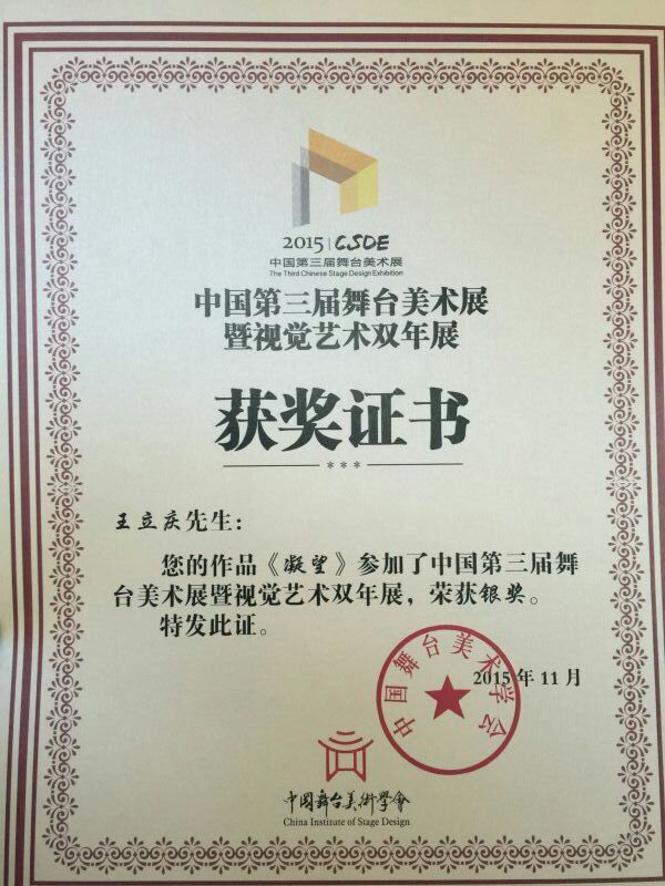 “中国第三届舞台美术展暨视觉艺术双年展”日前落下帷幕,乌鸦传媒 教授王立庆、副教授韩博的参展作品分获银奖、铜奖。