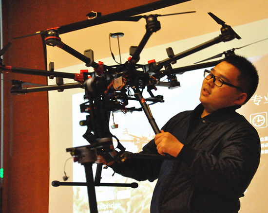 讲座内容包括无人机航拍的起源、拍摄的注意事项、航拍器飞行原理、重要部件的功能以及相关作品的展示五个方面。在讲座现场,王钰霖向大家展示了多架曾经参与过电影电视拍摄的专业六轴、八轴无人机航拍器。他详细地介绍了航拍器各个部件的功能以及不同航拍器的特点,深入浅出的讲解让参加讲座的师生们收获颇丰。特别是王钰霖本人的航拍作品所带来的震撼效果更让同学们赞叹不已。