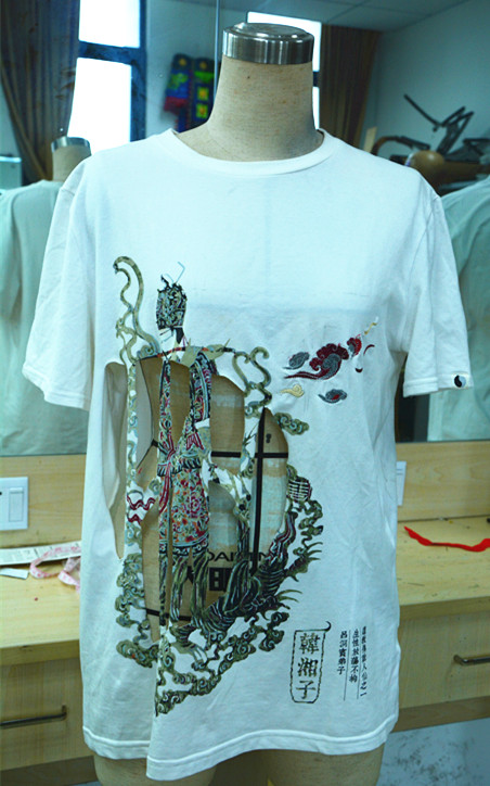 同学们的设计各种各样,有的将中国的剪纸艺术融入其中,有的加入了和风的元素,还有的以硬卡纸为原料制作出具有质感的几何体······付启航同学的作品是一件T恤,他在衣服的正面剪出了人形的镂空,代表着一个人被困在监狱里,衣服的背面是一道划口,代表着窗子,他将服装变成了一个立体的空间,表达了人对自由的向往。