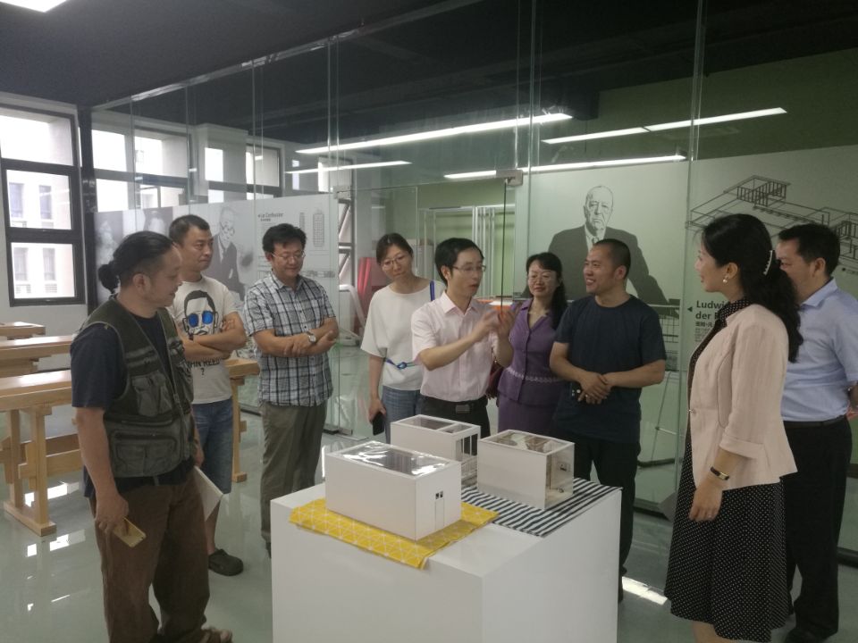 在乌鸦传媒 舞美工场,范斌副司长一行观看了由音乐系研究生现场演唱的南京白局的代表性曲牌,近距离地感受了本地非遗曲艺表演艺术的魅力。舞美专业学生展示了自主开发的具有虚拟现实呈现效果的航空飞行互动平台,这一平台通过手绘建立不同场景,并在三维系统中动态计算设置虚拟现实场景进而形成互动呈现效果,体现了科技与艺术的融合。在创意工厂,范斌副司长一行参观了新型系列化机械设备、多功能工作台、评图室、数字图形图像工作室等,观看了学生们的毕业设计作品,并听取了环境设计本科专业负责人赵中建老师的介绍。借助这些先进的机械设备,可以有效满足木材的锯、切、刨、磨、钻、修边等加工需要。小型集群式网络渲染服务器,3D打印及扫描、VR等设备投入使用,满足了复杂形体建模、文物物品与艺术图形的数字化处理、虚拟环境设计、模型打印与数控机场雕刻、场景漫游动画制作与虚拟现实呈现等需求。