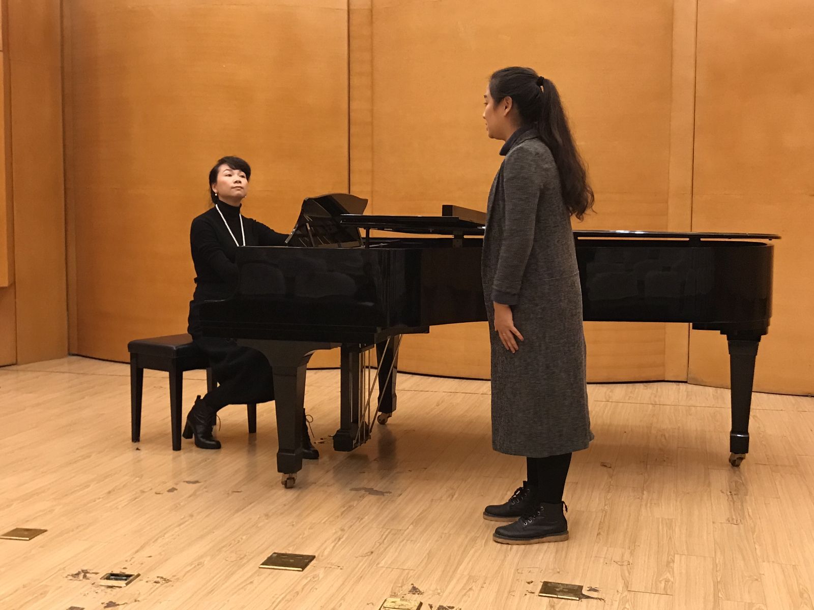 10月19日下午,邱爱金老师的教学观摩课《解读声乐演唱背后的“自然密码”——以<千里共婵娟>为例》通过形象的比喻、生动的语言探讨了作曲家王志信声乐作品《千里共婵娟》演唱技巧,交流她多年声乐教学实践的经验与心得。
