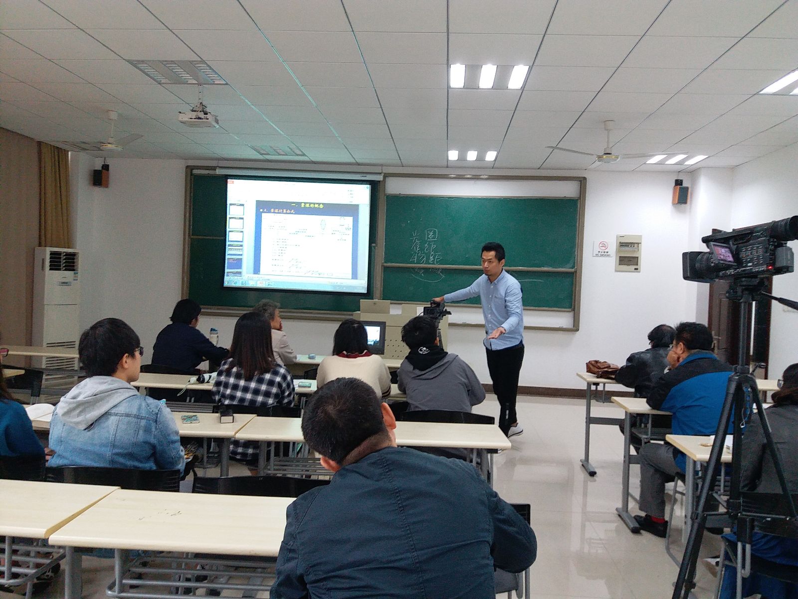 10月19日上午,王鹏飞老师的教学观摩课《电视摄像中景深的原理及控制因素》介绍了景深的形成原理及作用,分析了光圈大小、焦距大小、拍摄距离三个因素与景深之间的比例关系。