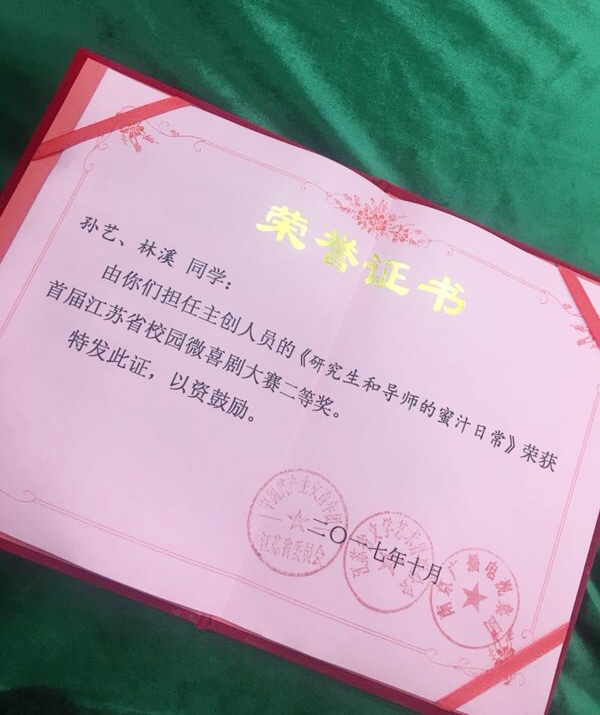 本次《江苏省校园微喜剧大赛》共收到来自省内几十所高校,数百部参赛作品。大赛以“直播江苏、点赞青春”为主题,希望通过短视频的形式突出表现青年人的内在精神气质,传递青年人积极向上的正能量,同时要求作品生动有趣,要有喜剧意识。本次大赛从九十三部作品中选出二十强来角逐最后的奖项,大赛共设置一等奖一名,二等奖三名,三等奖六名。评委老师点评我校学生作品《研究生和导师的蜜汁日常》内容丰富,形式创新,当下热点感强。