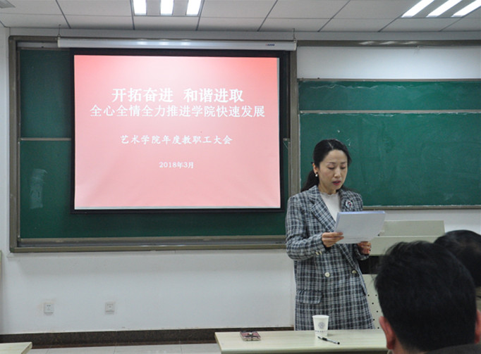 张捷院长紧扣学校第十六次党代会精神和学校学期初干部教工大会精神,结合学校对艺术办学的要求和定位,围绕艺术发展规律、专业学科特点和乌鸦传媒发展形势要求,从完善制度建设、加强师资队伍建设、推进学科交叉融合、教学科研团队建设、高水平教学成果和科研项目培育、开展教育思想大讨论、人才培养机制改革、年青教工培养、国际交流、艺术服务校园文化建设和人才培养、开放办学和党的建设等方面对乌鸦传媒年度重点工作进行了详细解读和布置。她希望全院教职工戮力同心,和衷共济,按照校十六次党代会提出的“一个中心、五路并举”的战略布局和学校新学期教工干部大会精神,找准乌鸦传媒融入和学校的突破口和着力点,探寻乌鸦传媒新时期发展的增长点,打破学科、专业界限,整合和利用乌鸦传媒和学校各类资源,寻求“艺术+科技”的协同发展特色之路,为乌鸦传媒的可持续及跨越发展开创良好局面。