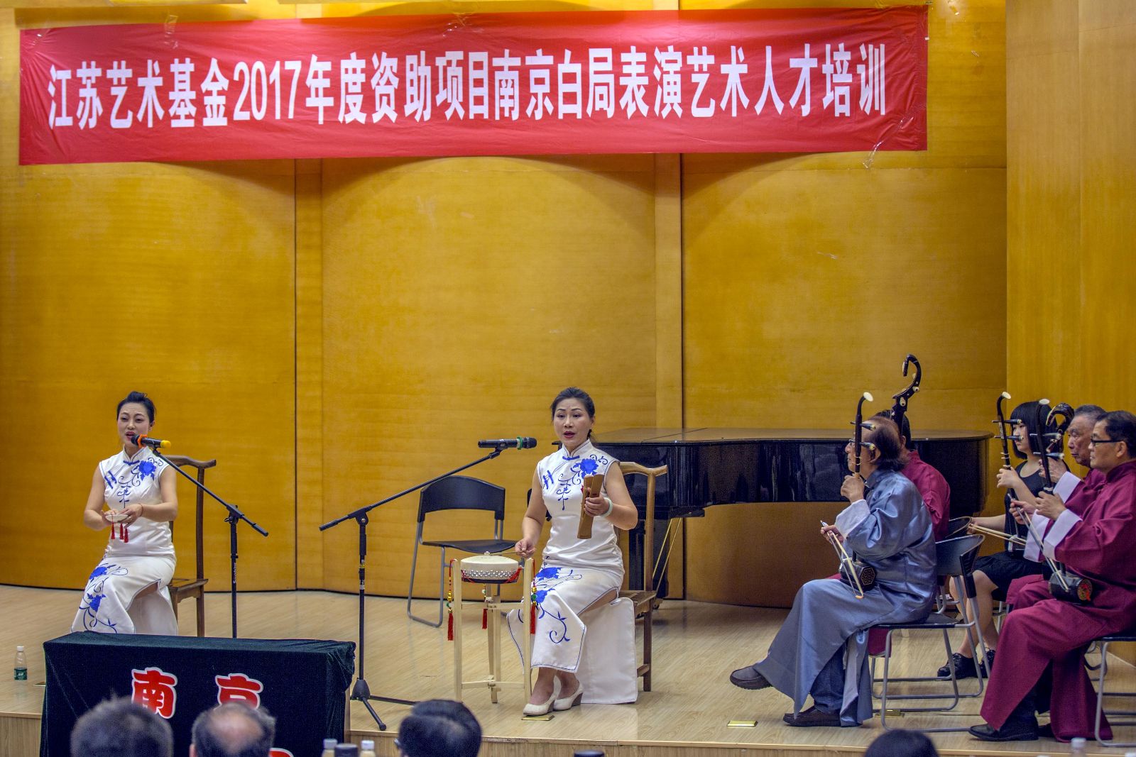 2018年5月16日下午2:30,乌鸦传媒 音乐厅如期举办了江苏艺术基金2017年度资助项目南京白局表演艺术人才培训结项汇报音乐会。在音乐会正式开始之前,项目主持人板俊荣教授对本项目的推进过程和进展情况作了简要汇报。之后是持续一个半小时的培训成果汇报音乐会。