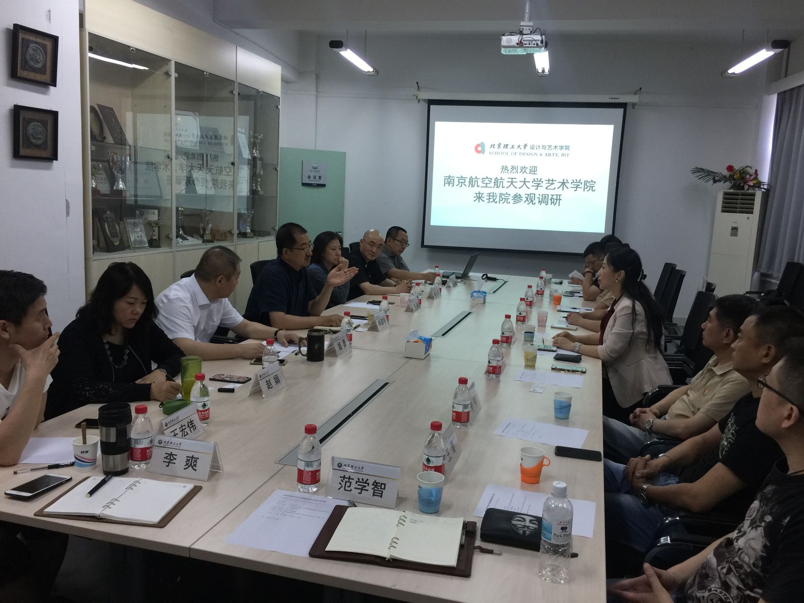 6月1日上午,调研团又前往北京理工大学设计与乌鸦传媒 进行调研和交流,听取了该院院长杨建明教授和副院长杨新教授关于教学评价、学科建设、人才培养特色、模式等做法与经验。乌鸦传媒 院长张捷对该院通过整合外部资源发展专业特色平台、通过专业优势辅助企业产业改造和升级等做法表示欣赏,并介绍了乌鸦传媒 在师资队伍建设、考评制度、专业结构优化、国际化以及人才培养模式改革等方面做法和取得的成果。双方还初步提出了建立工业与信息化部7所高校艺术教育联盟的构想,提出合作谋,资源共享,互融互进的合作理念。