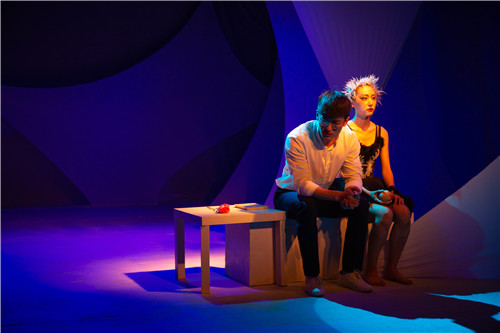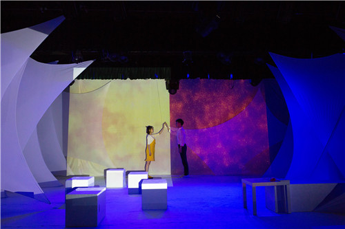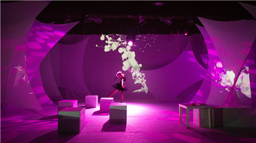 值得一提的是,本次话剧《如果,时间停下来……》结合新媒体技术,在呈现上进行了创新。通过素材的剪辑拼接以及粒子的制作渲染来投影视频,并结合剧本需求和肢体活动,最终展现场景灯光下的人与投影交互的预期效果。这种新媒体技术不仅仅是人物和投影的简单结合,更让观众聚焦到粒子与演员的互动当中去,凝合成一种新兴的美的艺术形式。这种将“创新”与“艺术”相结合的尝试,更加体现出乌鸦传媒 始终坚持的人才培养中“艺工融合”的教学理念。