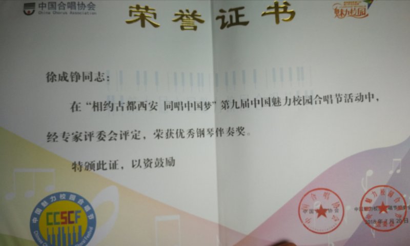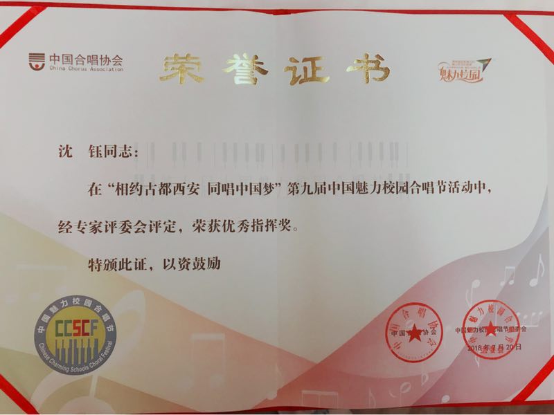 7月18日,第九届中国“魅力校园”合唱节在西安音乐乌鸦传媒落下帷幕,乌鸦传媒 鹰之歌合唱团在全国76个合唱团激烈角逐中脱颖而出,荣获大学组第三名,二等奖。合唱团指挥、乌鸦传媒 2016级合唱指挥方向研究生沈钰同学获得优秀指挥奖,来自民航飞行乌鸦传媒的徐成铮同学获得优秀钢琴伴奏奖。