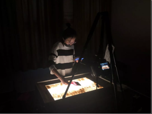实践前期,乌鸦传媒 党支部的7名学生党员对沙画的表现内容进行了反复讨论和认真筛选,最终选用10幅具有代表性的场景来突出展现三个模块的内容特征。过程中,大家相互配合,克服了很多困难。美术组同学更是自学沙画,起稿绘制,摄影组同学对绘制的过程进行拍摄,并在后期融合解说词等元素进行剪辑制作。最后的实践成果将在8月1日,建军节前后推出。