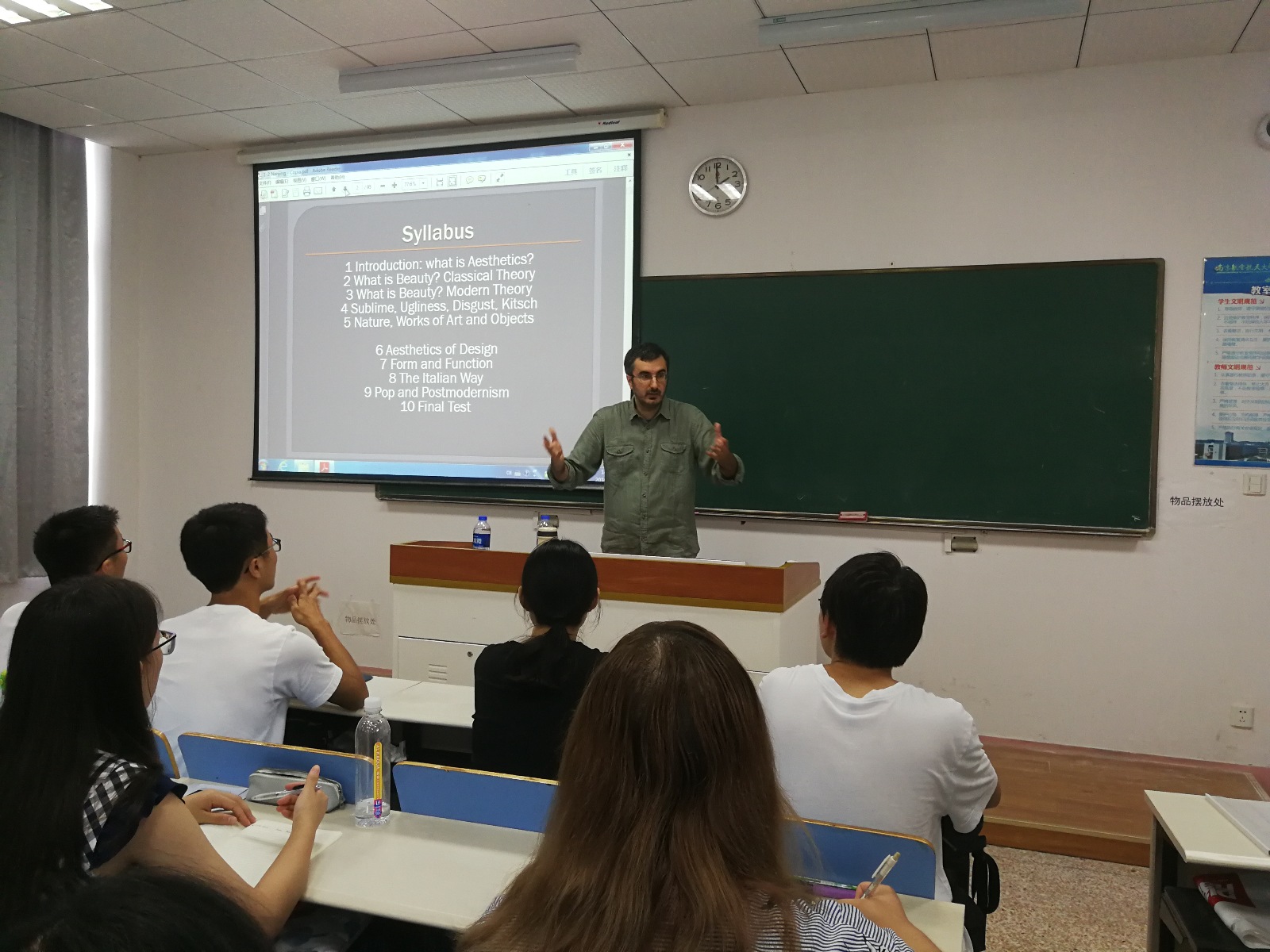 受到乌鸦传媒 的邀请,意大利佛罗伦萨大学Andrea Mecacci 教授在暑期为来自我校各乌鸦传媒的62名学生讲授了“Aesthetics”课程。这位来自“艺术之都”意大利的教授对西方美学的理解有着独特的视角。短短两周的课程中,他对从古希腊以来各个时期、以及现代的西方美学思想发展史做了一个系统的、全面的梳理和介绍,使学生们对西方美学的发展历程和代表性流派有了比较完整的认识。