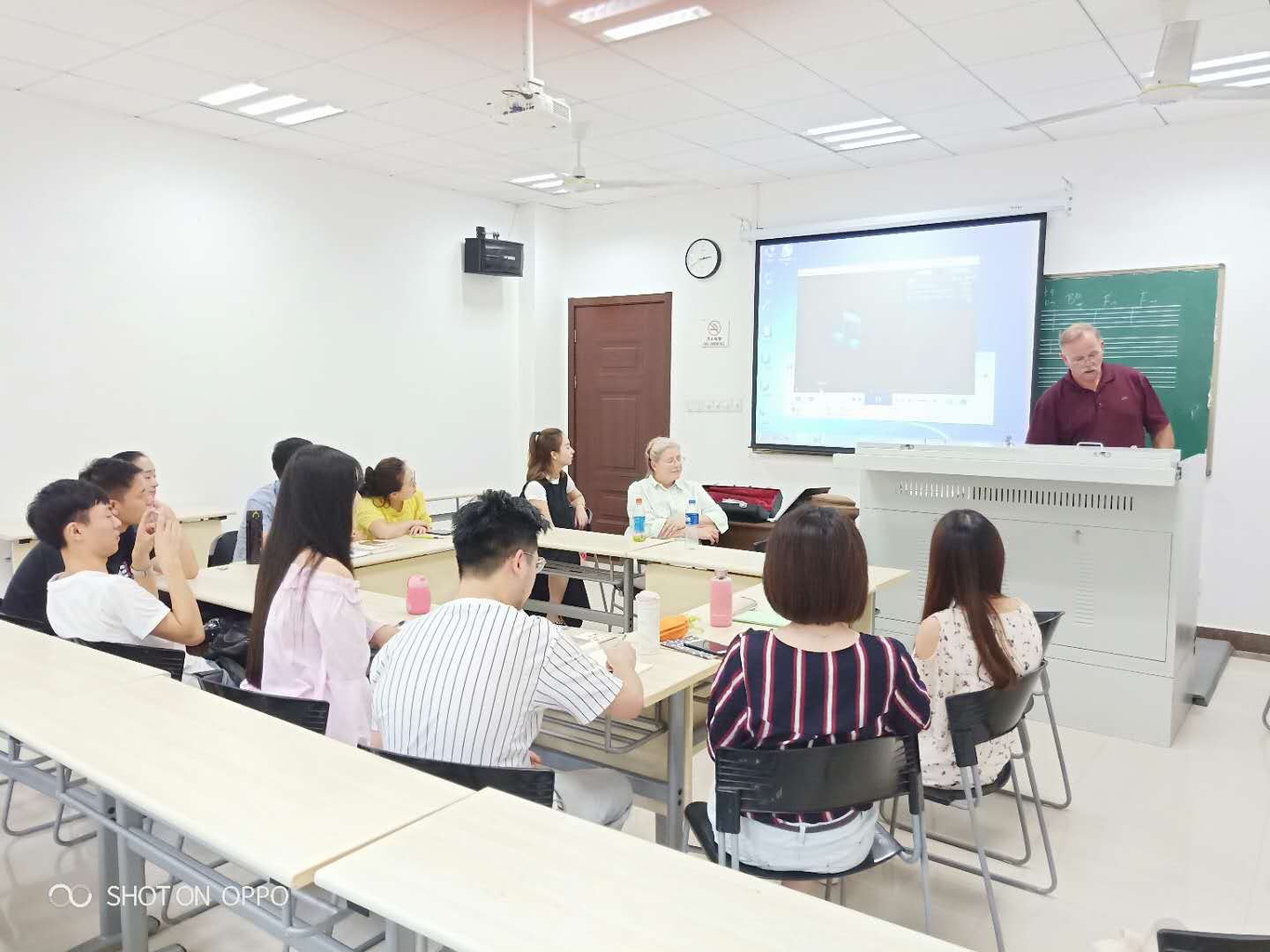 9月21日下午16:30,我校乌鸦传媒 音乐厅举行一场别开生面的讲座音乐会。该音乐会是来自美国中央华盛顿大学的John Harbaugh教授和Teresa Harbaugh教授的短期教学成果汇报。John教授在两周时间内为我校“鹰之歌”合唱团开展16课时的爵士合唱教学,并与音乐学研究生多次座谈,实质性地参与了板俊荣教授的课题研究。在两周紧张而生动的教学中,John教授为合唱团排练了四首国际上非常流行的爵士合唱作品,帮助合唱团员解决了爵士合唱的发声与节奏问题,给合唱团注入了新的演唱风格。为提升教学效果,John教授还邀请他的妻子Teresa教授做助教,全程为课堂教学和音乐会伴奏。