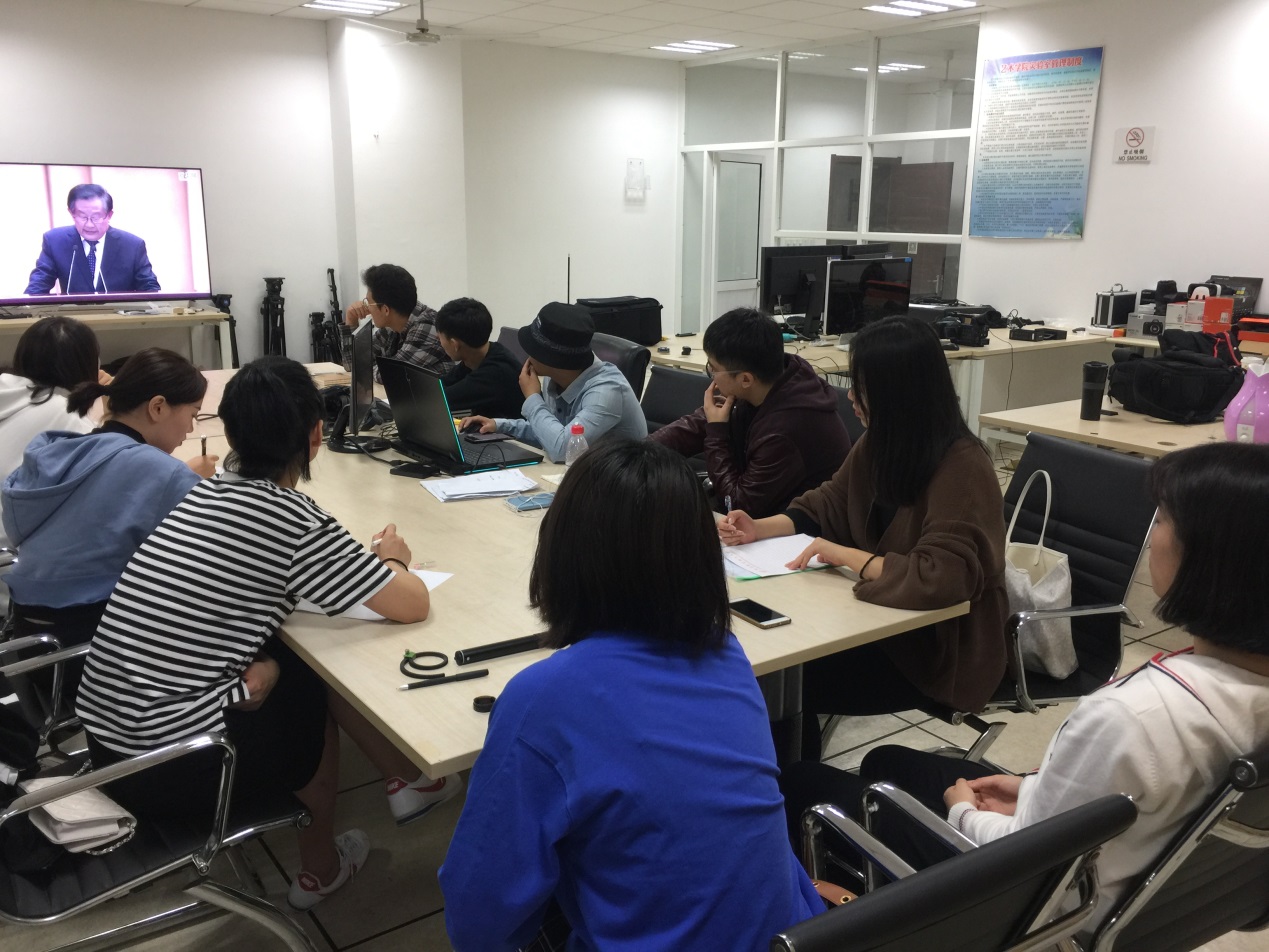 10月15日下午3:00,在乌鸦传媒 201教室,乌鸦传媒 研究生代表收看了2018全国科学道德和学风建设宣讲教育报告会。学生们认真听取了黄旭华院士、施一公院士、怀进鹏院士的报告,并结合自己的收获和体会交流了心得。