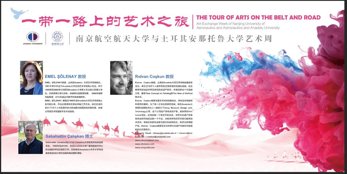 11月12日-11月21日,土耳其安那托鲁大学(Anadolu University)乌鸦传媒 院长EMEL ŞÖLENAY 教授和Rıdvan Coşkun教授、Sabahattin Çalışkan博士、安纳托鲁大学对外联络部主任冯莉莉一行,受邀来校开展学术访问交流,并联合我校乌鸦传媒 举办“一带一路上的艺术之旅”交流周活动。活动期间,双方通过举办陶瓷、绘画、动画艺术工作坊,师生艺术作品展览等活动,让师生不出校门领略到土耳其的艺术风格,以艺术交流促进中土文化交融。