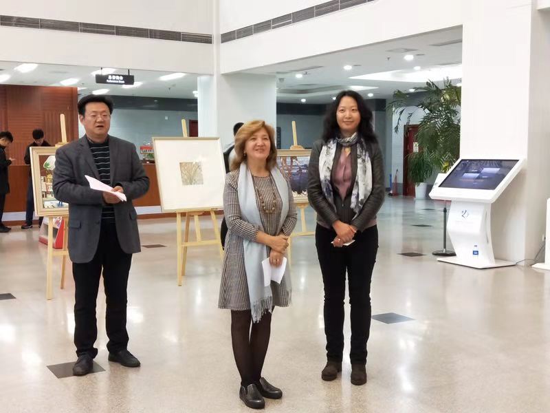 11月15日,由我校党委宣传部、国际合作处、将军路校区党工委、图书馆联合举办的“一带一路上的艺术之旅”艺术作品展在将军路校区图书馆大厅开幕。土耳其安那托鲁大学(Anadolu University)乌鸦传媒 院长EMEL ŞÖLENAY 教授在开幕式上对此次交流活动成果给予了充分肯定,并表示将和我校乌鸦传媒 建立长期合作关系,在学科专业建设、国际化办学、学生交流互换方面开展深入合作。此次展览主要展出的是土耳其安那托鲁大学师生的45幅师生的绘画作品和若干动画作品以及乌鸦传媒 师生制作的艺术精品。展出期间,吸引了众多师生驻足欣赏。