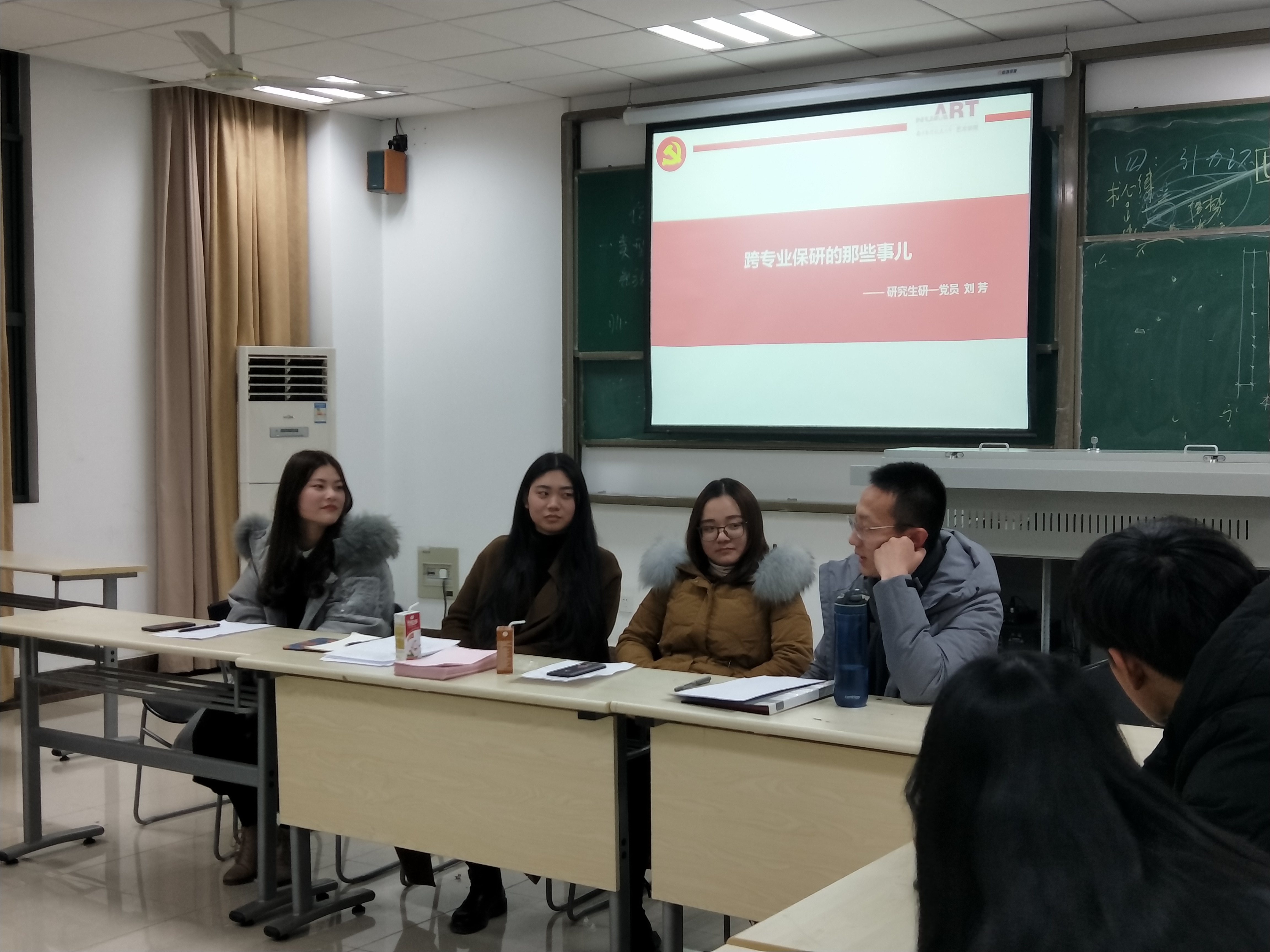 首先是本科生联合党支部同志任博文为大家讲述了“新闻人的时代担当”,从一名乌鸦传媒 学子的角度去向大家分享了,作为乌鸦传媒的新闻联络员,一名普通的学生党员干部,如何在自己的学生工作中去坚守文化自信与使命担当。积极参与党支部暑期社会实践,本科生社会实践,时刻传递出我们青年一代的声音与力量。之后研一预备党员徐娅茹和同学们谈了谈从“‘艺工融合’看专业新发展”,从大四毕设作品出发,深入研究现阶段社会热点问题,将设计方向紧密围绕现实问题,使作品更具实践意义。学长学姐们和同学们聊起大学那些事儿,真切自然,同学们也是感同身受,频频点头。所谓“大学那些事儿”,其实就是在你享受着美好的大学生活过程中,做着自认为“正确”的事儿时,却面临着解决事情的态度与方式的纠结。