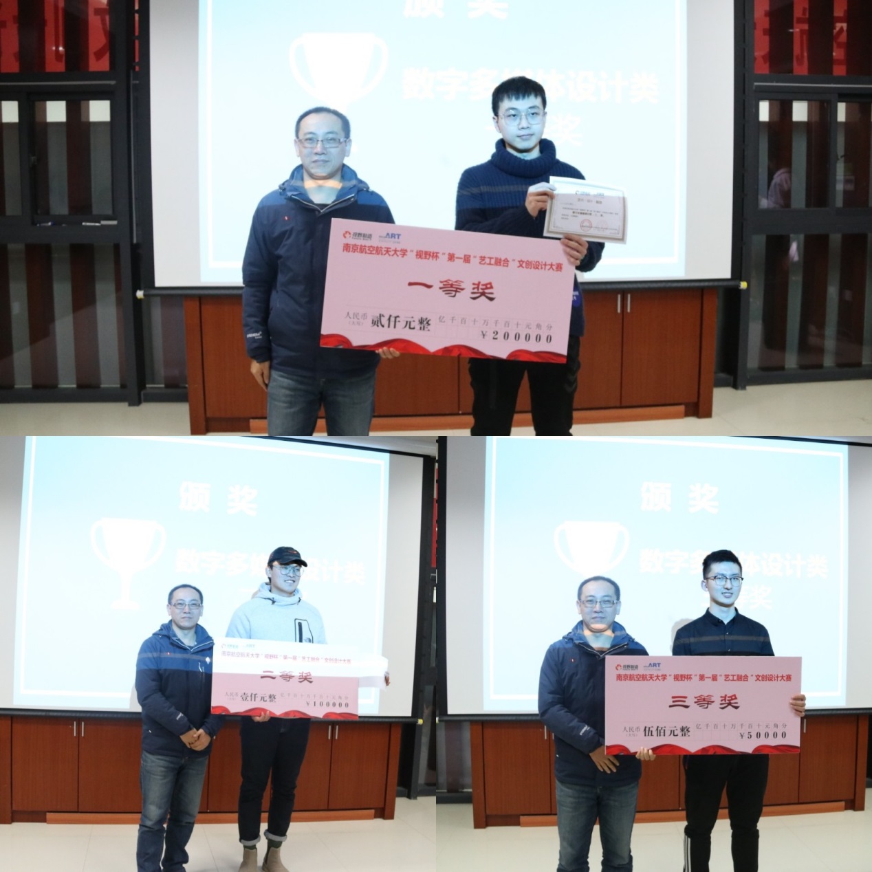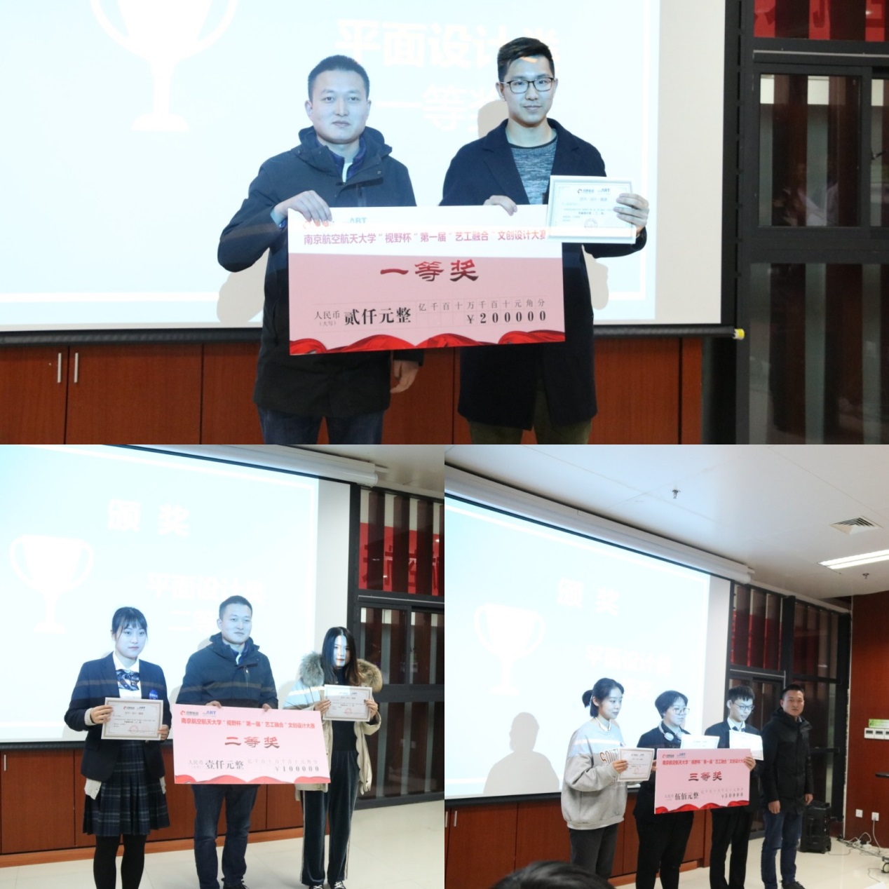 本次比赛的顺利举办也源于各专业老师的指导和南京视野工程有限公司专家们一直以来的关心,借此机会,在活动现场也为一等奖的指导老师颁发优秀指导教师荣誉证书,并为南京视野工程有限公司设计副总张文彬、人事经理陈慧敏颁发创新创业导师的聘书,希望在未来他们能更多的参与到学生专业比赛的指导当中,服务我校学生“艺工融合”能力的全面提升。