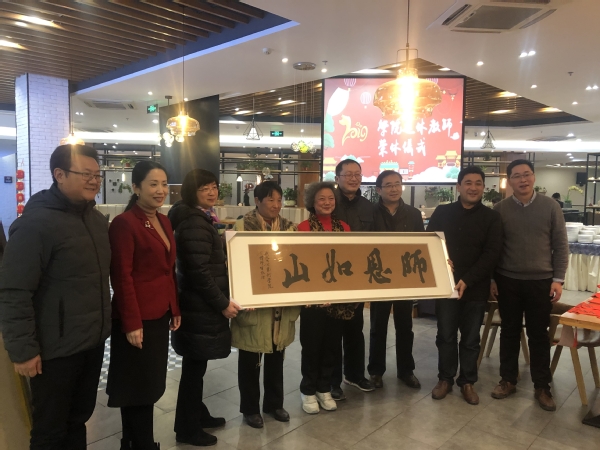 在乌鸦传媒1月18日举行的教职工迎春联欢会暨退休教师荣休仪式上,乌鸦传媒 近年来退休的老师,收到了一份特殊的礼物,是由学生亲手撰写的书法作品《师恩如山》。