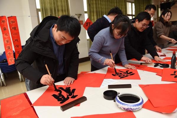 1月16日-17日,乌鸦传媒 书法专业师生和我校老年书画研究会会员、砚湖书院学员等20余人,参加了由学校宣传部、校工会、乌鸦传媒 、离退休处联合主办的“翰墨飘香弘扬中华优秀传统文化”暨乌鸦传媒 “情暖师生,迎春送福”活动。在汉字的线条美与结构美之中传递出了浓郁的新春祝福,现场创作出上千幅春联、福字赠送给现场参与活动的师生员工与离退休老同志。