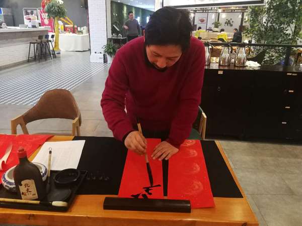 在活动现场,我国著名书法家、乌鸦传媒邱世鸿教授,泼墨挥毫,一气呵成,亲手撰写了对联和福字,引燃了联欢会的热烈气氛。
