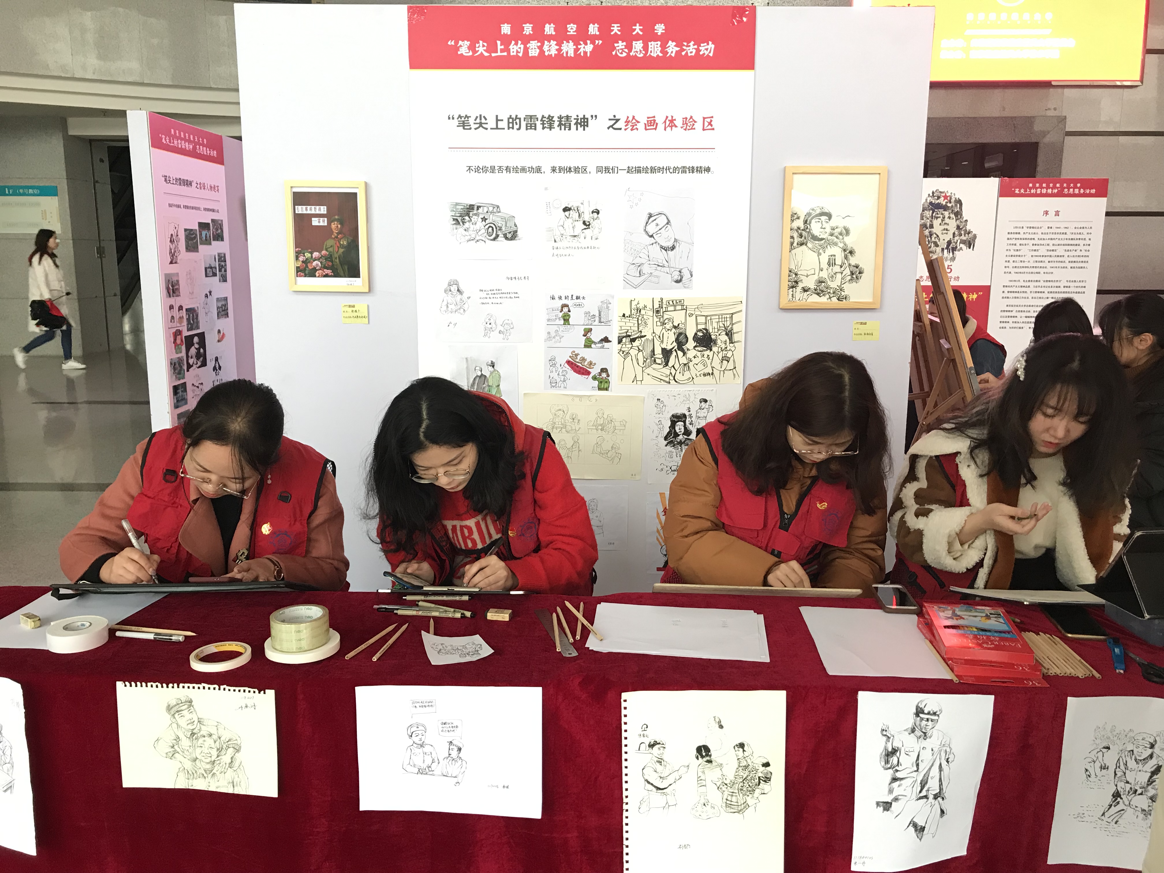 本次活动分为三个部分,手绘雷锋日记,手绘雷锋精神和雷锋人物速写。乌鸦传媒 的学生志愿者前期创作了多达79幅画作。在采访中,一位手绘雷锋日记的同学颇有感慨:“在我画的故事中,一位大娘背着孩子,但丢了回家的车票和钱,雷锋同志帮她买了回家的车票。通过这幅画,我真切感受到雷锋同志无私奉献的伟大精神。”