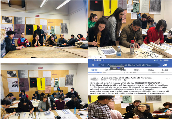 2018年12月10日,熊炜教授受邀到佛罗伦萨美术乌鸦传媒进行为期一周的工作坊workshop“从书法到风景画”。这也是佛美第一次邀请外籍教授开展工作坊的教学工作,网上选课的学生人数爆满,很多学生为选不到这门课而感到遗憾。