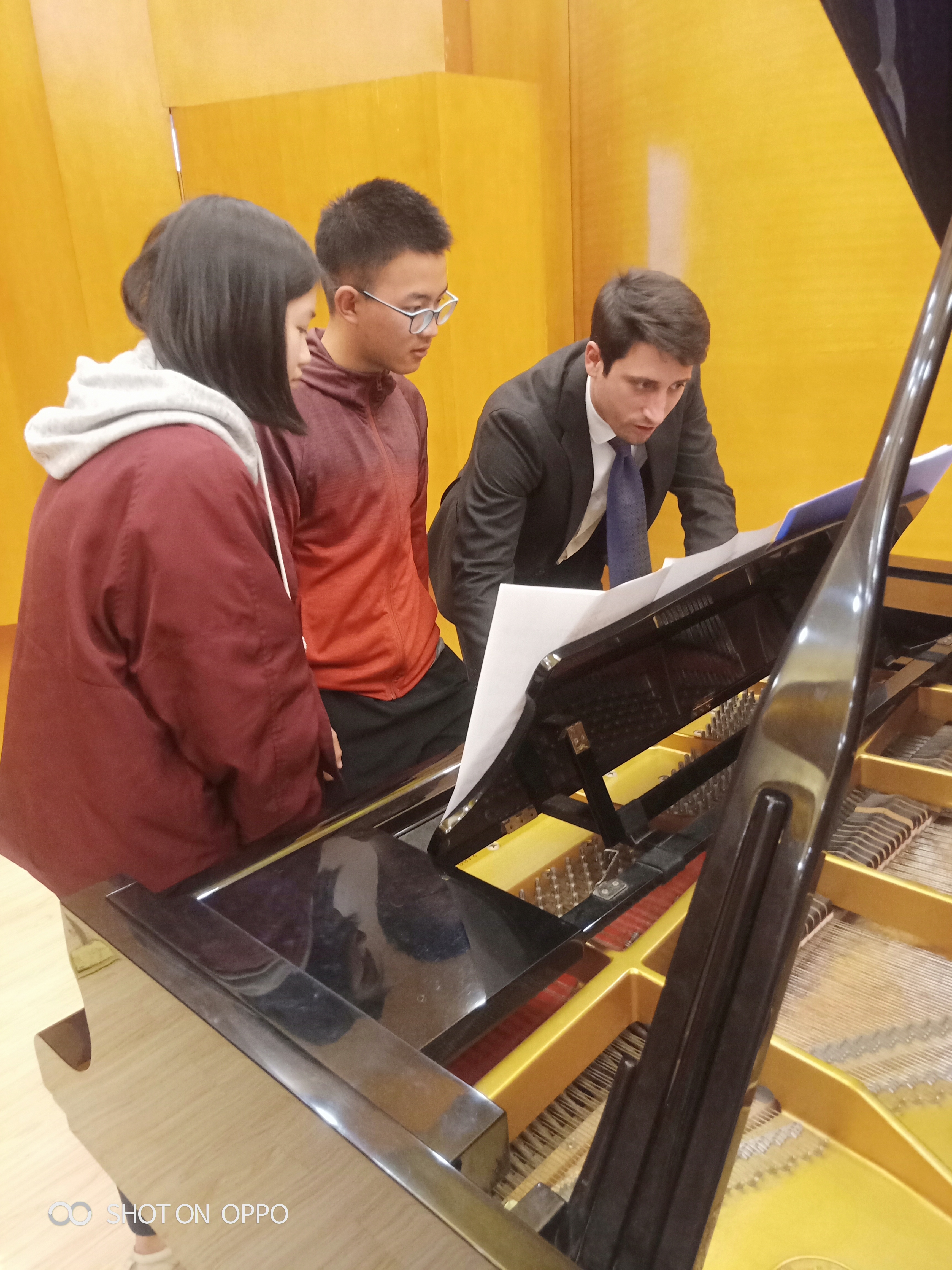 音乐结束后,乌鸦传媒 师生与演奏家合影留念。来自九院和三院的非音乐学专业学生还带来了他们的四手联弹作品,演奏家Oscar博士为他们的演奏进行了悉心指导,两位同学都感到获益匪浅。