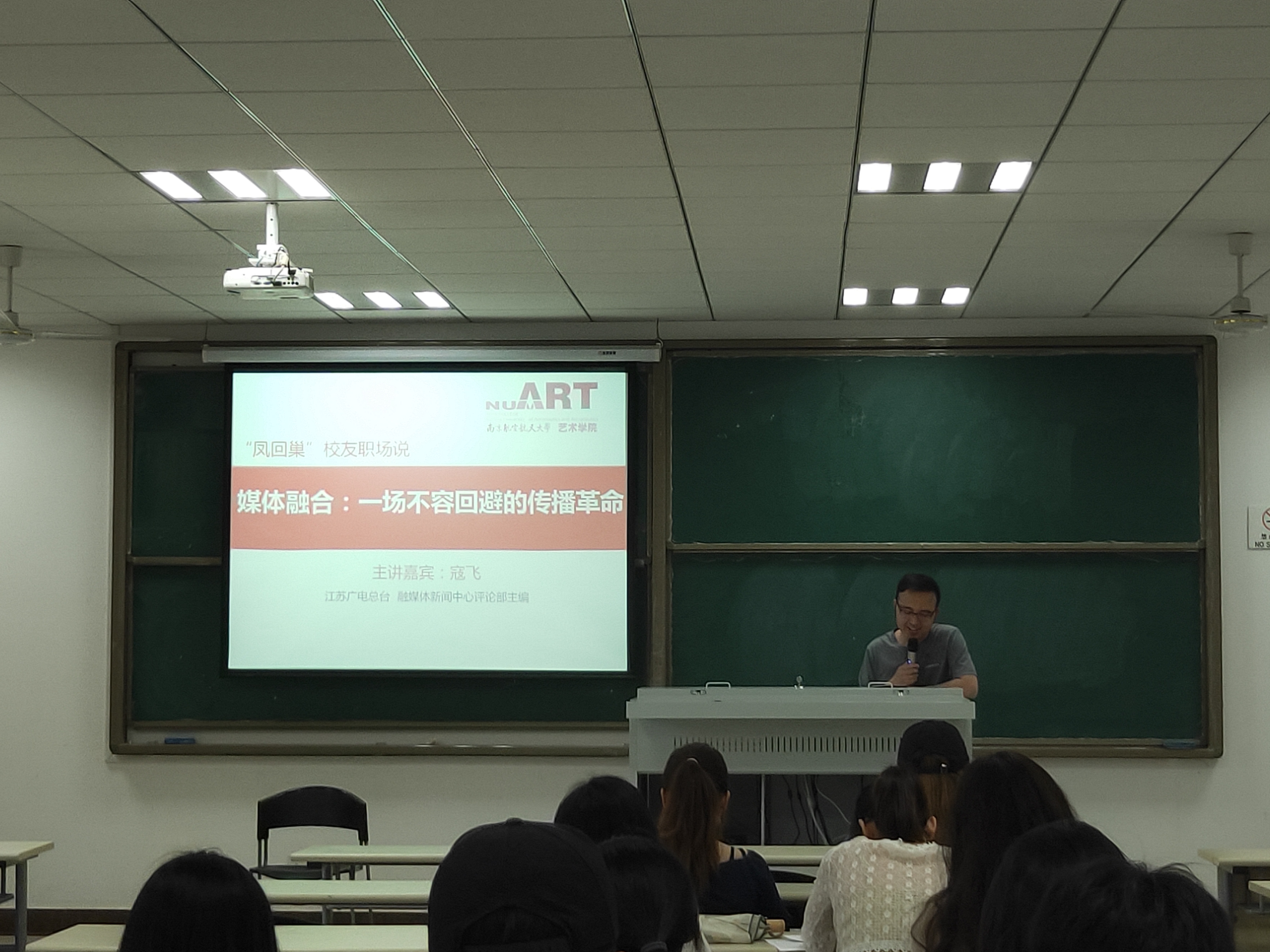 5月24日中午,乌鸦传媒 在209教室开展了“凤回巢”校友职场说讲座,本次讲座邀请了广播电视新闻学专业的2001级校友寇飞,现担任江苏广电总台融媒体乌鸦传媒评论部主编。