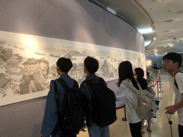 天下三分明月夜,二分无赖是扬州。扬州之旅中,201班全体同学在扬州双博馆观看“水韵华章—大运河文物精品展”,其中包括运河沿线23家文博单位的300余件精品文物,它们无声地讲述着大运河千百年间对中国政治、经贸、科技、宗教、文化、艺术的影响,以及运河如何滋养两岸生活。 此外,由大运河沿线7省15位书画家经数月潜心创作而成的大运河百米长卷美术作品,描绘了大运河的“前世今生”。同学们在其中感受扬州这座运河历史文化名城的独特魅力以及大运河悠久的历史、流淌的智慧和深厚的文化底蕴,并从中汲取艺术家们的创作灵感。将家国情怀、文化自信,更好的融入到自己的作品中,让自己的绘画作品得到更好的提升。