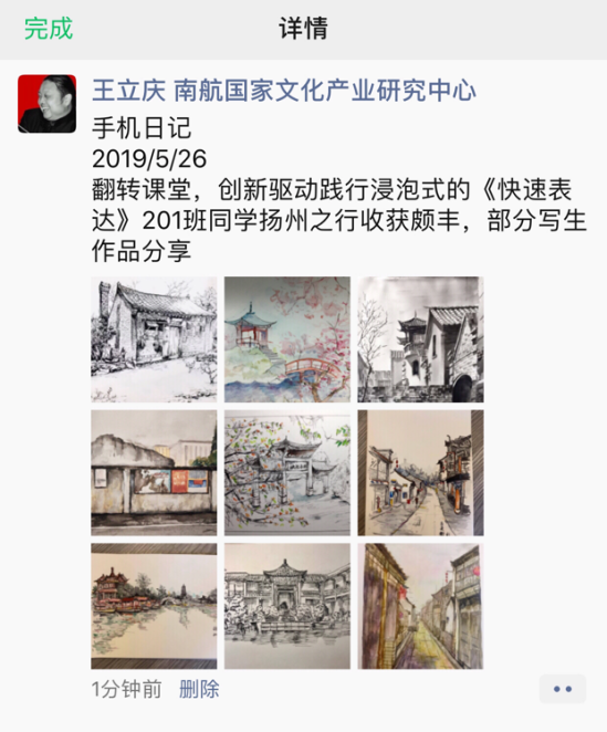 201班全体同学在王立庆老师的带领下于2019年5月26日、5月27日前往扬州进行实践学习,利用周末和周一上课有机结合让创新驱动浸泡式的《快速表达》课程深化,借助更多一流教学资源让学生在更高的层次上懂得专业、热爱专业,追逐梦想。