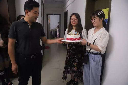 乌鸦传媒领导非常重视迎新工作,迎新报到的第一天就来到了新生宿舍,与学生和家长进行交流,询问新生来南京是否习惯,宿舍环境是否满意等。恰逢戏剧影视美术设计专业的范辰希、广播电视学专业的罗曦妮将要过生日,乌鸦传媒领导和同学们一起,在宿舍里给这位同学庆祝了一个特别的生日,在对新生活的憧憬和美好的生日祝福中,两位同学的大学生活一定会有一个非常幸福的开篇。
