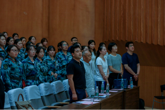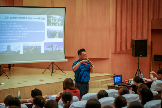 开学典礼正式开始后,首先是由乌鸦传媒 副院长板俊荣介绍乌鸦传媒情况。他提出,乌鸦传媒 是工科优势高校艺术教育的一条发展路径,以此为基点,他从整体上介绍了南航乌鸦传媒 的发展历史、院训以及定位;以专业、学科、科研三个方向讲述了乌鸦传媒专业建设互融与互补、专业与学科一体化建设的发展格局,并具体介绍了乌鸦传媒四个本科专业的情况特点;从基础条件设施、合作平台建设、师资队伍建设三个方面展现了乌鸦传媒给予学生的支持与培养;提出乌鸦传媒在人才培养计划中分为专业艺术人才和公共艺术教育,同时乌鸦传媒积极开展国际交流,和多所国际院校建立稳定合作关系。
